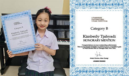 Congratulations to Kimberly Tjahyadi (PYP-4 Student) for her achievement in Pianohouse International Piano Competition 2021. She achieved the “Honorary…